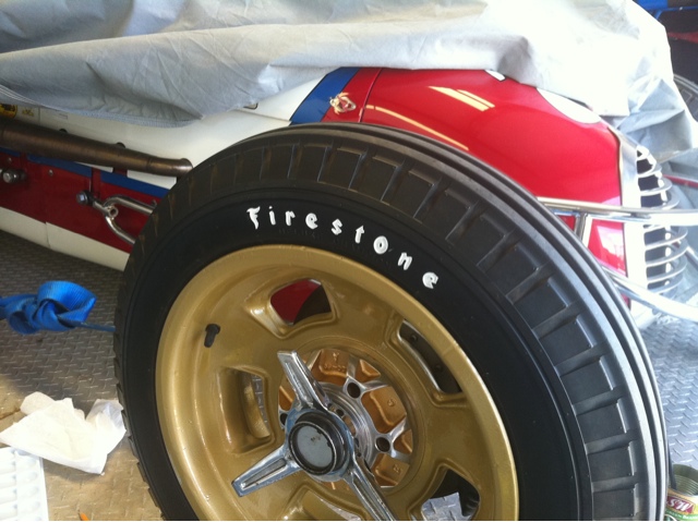 Kenny Van Blargen was able to see his trusty racer restored and together, the day before he past away. He was touched and very proud. He said that everything was great, and looked like it did back in the day, except... The tire lettering, back then was white. Today's tires are not. This morning, for Kenny, I made them white. Kenny's last request, it was a pain, and somehow I feel like he was laughing at me, and that makes me smile.